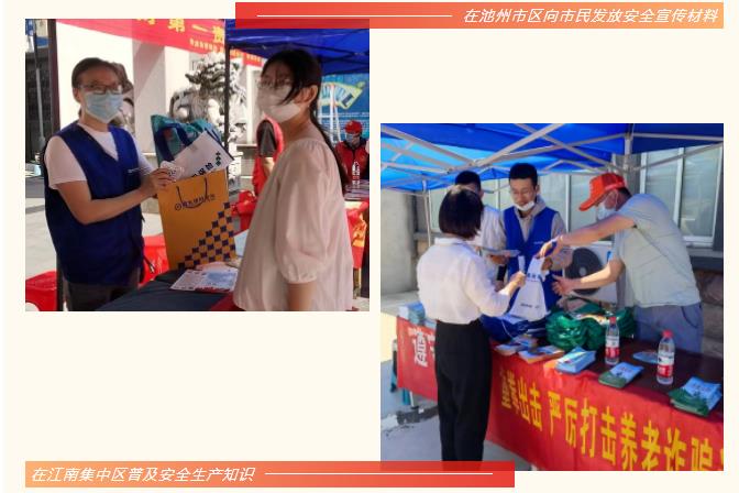 國元保險(xiǎn)經(jīng)紀(jì)公司聯(lián)合合肥逍遙津街道縣橋社區(qū)開展安全宣傳“五進(jìn)”活動,深入社區(qū)一線,面向社會公眾宣傳安全生產(chǎn)月和消防安全大檢查。公司定制了宣傳展架、宣傳折頁和宣傳團(tuán)扇,并與社區(qū)民眾密切交流,進(jìn)一步宣傳安全生產(chǎn)法、安全生產(chǎn)知識和消防安全常識,同時(shí),向社會公眾普及公司安全生產(chǎn)責(zé)任保險(xiǎn)業(yè)務(wù)。安全生產(chǎn)月期間,國元保險(xiǎn)經(jīng)紀(jì)公司還通過短視頻平臺推出安全生產(chǎn)責(zé)任保險(xiǎn)系列科普短視頻,積極推動安全生產(chǎn)責(zé)任保險(xiǎn)制度的落實(shí)。